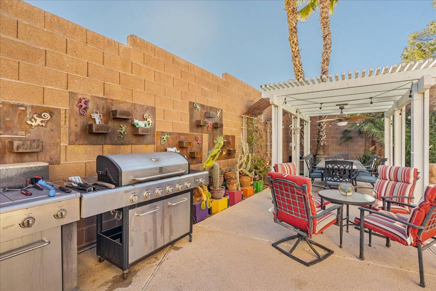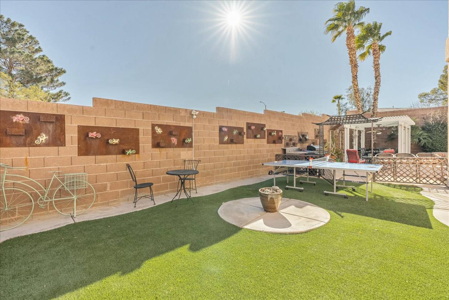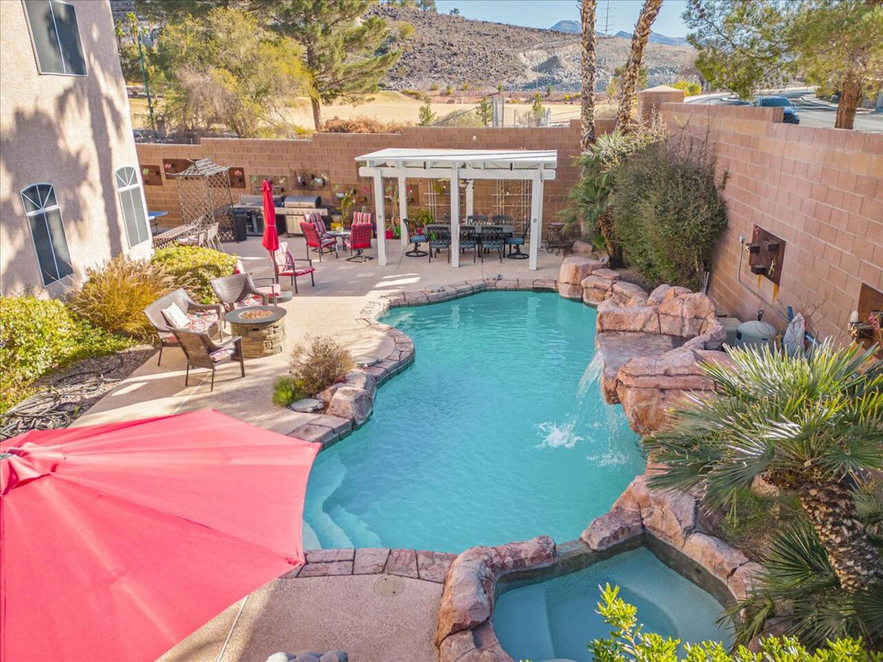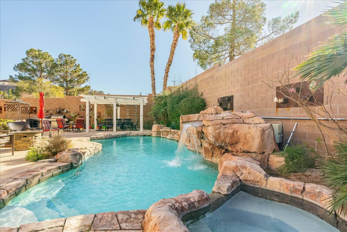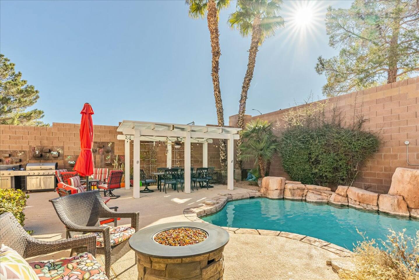 Escape to Vegas in our stunning 5-bedroom villa with soaring ceilings, cozy fireplaces and abundant natural light. Enjoy a resort-style pool heated free year-round, hot spa, outdoor kitchen, ping pong, pool table and games. Perfect for friends getaways, work groups and families -- the best of Vegas without the chaos. This oasis is 15 minutes from the Strip or airport, near hiking, biking and climbing, school and collegiate sports, Red Rocks, Lake Mead and Hoover Dam. Pets welcome.