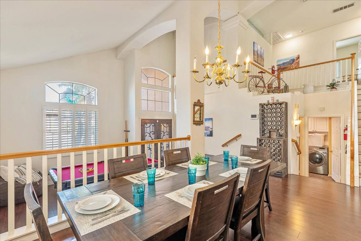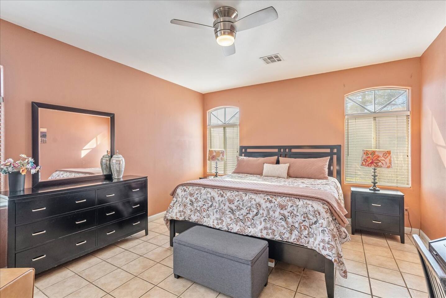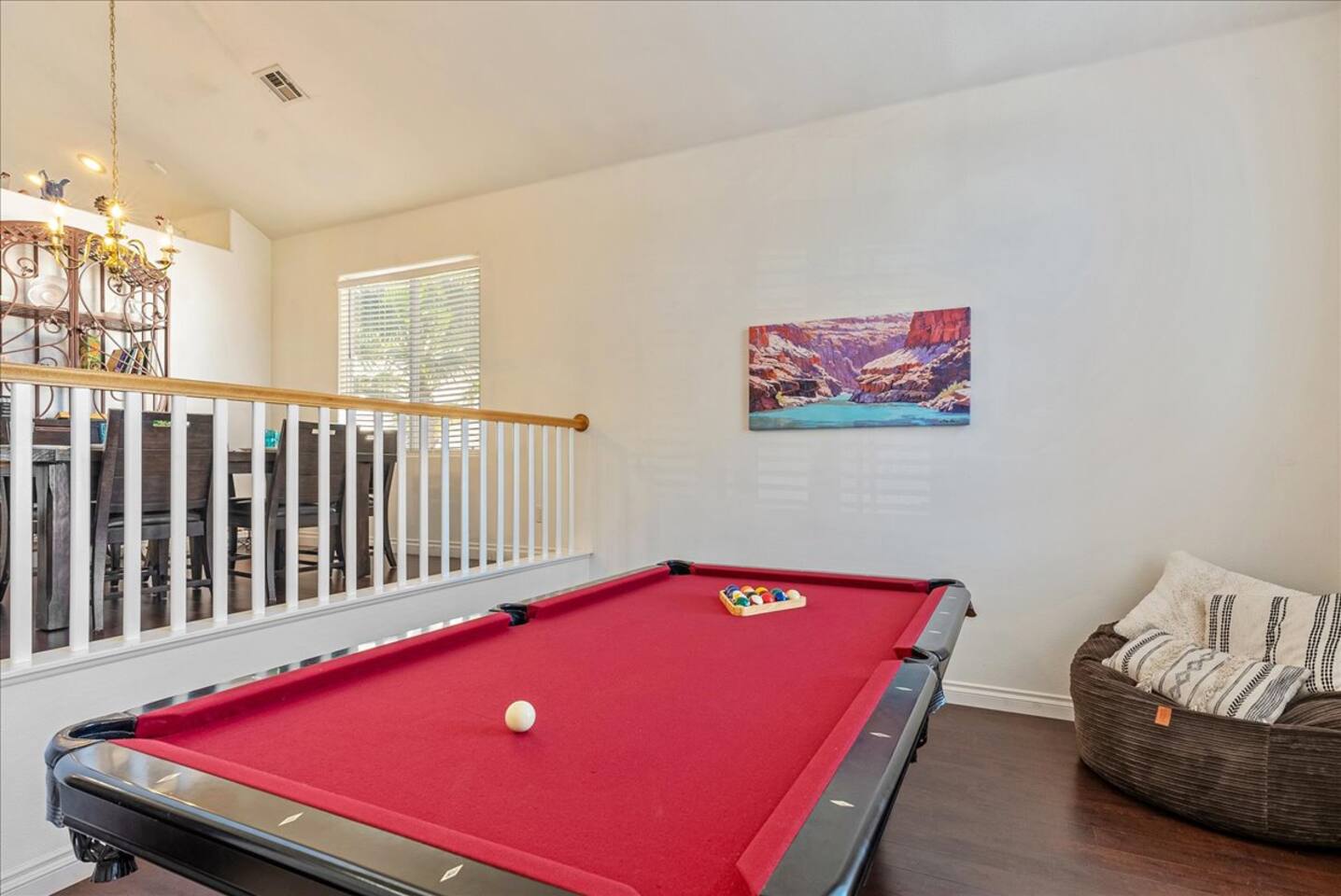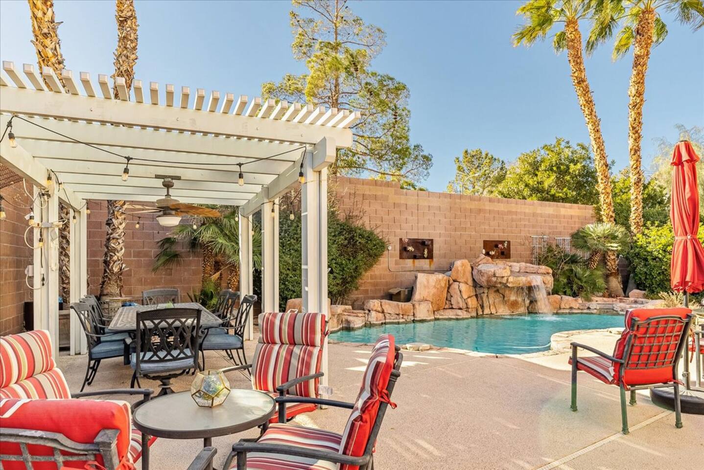 Welcome to the Henderson Hacienda β a home that truly stands apart from the endless Vegas suburbs. Spanish colors, warm terracotta, and carefully curated details greet you at every turn, from the soaring cathedral ceilings to cozy fireplaces. Outside, a sparkling pool and spa are framed by palms, cacti, and desert art, creating a private oasis for relaxing or entertaining. Mornings begin with coffee by the waterfall, afternoons invite nearby hiking, Red Rocks, or Lake Mead, and evenings let you choose between a night on the Strip or quiet seclusion at home. Safe, serene, and thoughtfully designed β this is your curated haven just 15 minutes from everything Vegas has to offer. Our home blends indoor comfort and outdoor luxury in a warm, personal style. It is spacious and relaxing for a couple in the downstairs master suite. With its 5 bedrooms, it is also perfect for friends and families seeking relaxation and adventure. Outdoor lovers, mature travelers, event and corporate groups will find this an especially convenient and relaxing base. Pets are welcome, and our back yard is fully fenced. π YOUR PRIVATE RESORT *Outdoor Paradise:* β’ Resort-style pool heated FREE year-round (up to 85Β°F) β’ Hot spa heated FREE (up to 102Β°F) β’ Cascading waterfall for ambiance and cooling β’ Outdoor BBQ and dining area β’ Pergola with table seating for 10 β’ Fire pit for desert evenings β’ Ping pong table β’ Fully fenced yard (great for pets!) This isn't just a pool β it's your private desert oasis. Mature desert landscaping, ample lounging space, and a peaceful setting next to a public park. Perfect for families to spread out or corporate teams to unwind after convention days. π THE HACIENDA: SPACE, COMFORT & ENTERTAINMENT Living & Entertainment: β’ Soaring 30-foot cathedral ceilings with skylights β’ 75" TV with streaming β’ Cozy fireplaces (living room + master suite) β’ 8-foot slate pool table β’ Professional poker set, games, and toys β’ Bean bag that converts to a double bed Kitchen & Dining: β’ Fully equipped kitchen (cookware, dishes, coffee/tea) β’ Main dining table seats 10 β’ Kitchen table seats 5, bar seats 2 β’ Indoor and outdoor dining options Bedrooms (sleeps 10): β’ Master Suite (downstairs): King bed, workspace desk, ensuite bathroom with soaker tub, see-through fireplace, natural light β’ Bedroom 2 (upstairs): Queen bed, lounge chair, 60" TV β’ Bedroom 3 (upstairs): Two twin beds + optional floor mattress β’ Bedrooms 4 & 5 (upstairs): Two queen beds in a flexible "split" room with barn door (can be one large space or two private rooms), 60" TV in loft area Bathrooms: β’ Master ensuite (soaker tub + shower) β’ Upstairs full bath (tub-shower combo) β’ Downstairs half bath Work-Friendly: β’ Dedicated desk in master bedroom β’ High-speed wifi throughout β’ Quiet neighborhood (perfect for Zoom calls) β’ Plenty of space to spread out Garage: β’ foosball/air hockey table β’ gym with treadmill, stairmaster and weights β’ extra fridge if needed β’ indoor garage space for 1 car to avoid the Vegas heat! β’ outside driveway space 3 cars ποΈ OUTDOOR ADVENTURE AT YOUR DOORSTEP Anthem East Trail System: Step out your front door onto hiking trails with stunning sunrise and sunset views of the Vegas Strip and valley below. Nearby Adventures (all within 20-45 minutes): β’ Red Rock Canyon β World-class hiking, climbing, mountain biking (25min) β’ Hoover Dam β Engineering marvel and Lake Mead access (20min) β’ Lake Mead β Boating, fishing, jet skiing (20min) β’ Goldstrike Hot Springs β Desert hot springs hike (20min) β’ Valley of Fire β Incredible red rock formations (40min) β’ Mount Charleston β High-elevation escape when Vegas gets hot (45min) π LOCATION: BEST OF BOTH WORLDS Strip Access Without the Chaos: Just 15 minutes to the South Strip via easy freeway access β no gridlock traffic. Often faster than properties in Vegas proper! Enjoy world-class shows, casinos, and dining, then return to your peaceful Henderson retreat. What Makes Henderson Special: β’ Safe, upscale suburban neighborhood -- more like Palm Springs than Vegas (yet much more fun!) β’ Next door to a large public park (tables, BBQs, tennis, basketball, soccer) β’ 5 minutes from supermarkets and restaurants β’ Quiet nights (you'll actually sleep!) β’ Free parking (no Strip hotel fees) β’ 100% legal, licensed vacation rental Near Major Venues: β’ Las Vegas Convention Center: ~20 minutes β’ Airport: 15 minutes β’ Sports complexes and tournament venues nearby PERFECT FOR β Vegas friends groups β looking for peace, quiet and privacy but still fast access to the Strip β Families β Pool, games, park next door, hiking trails β Corporate & Convention Groups β Workspace, wifi, room to spread out β Sports Teams & Tournaments β Near youth/collegiate sports venues β Big Vegas Events β EDC, F1, concerts (not far, but well away from chaos) β Snowbirds & Extended Stays β Quiet, comfortable, well-equipped β Wedding Guests β Extended family lodging (not party central) β Outdoor Enthusiasts β Hiking, biking, desert adventure base