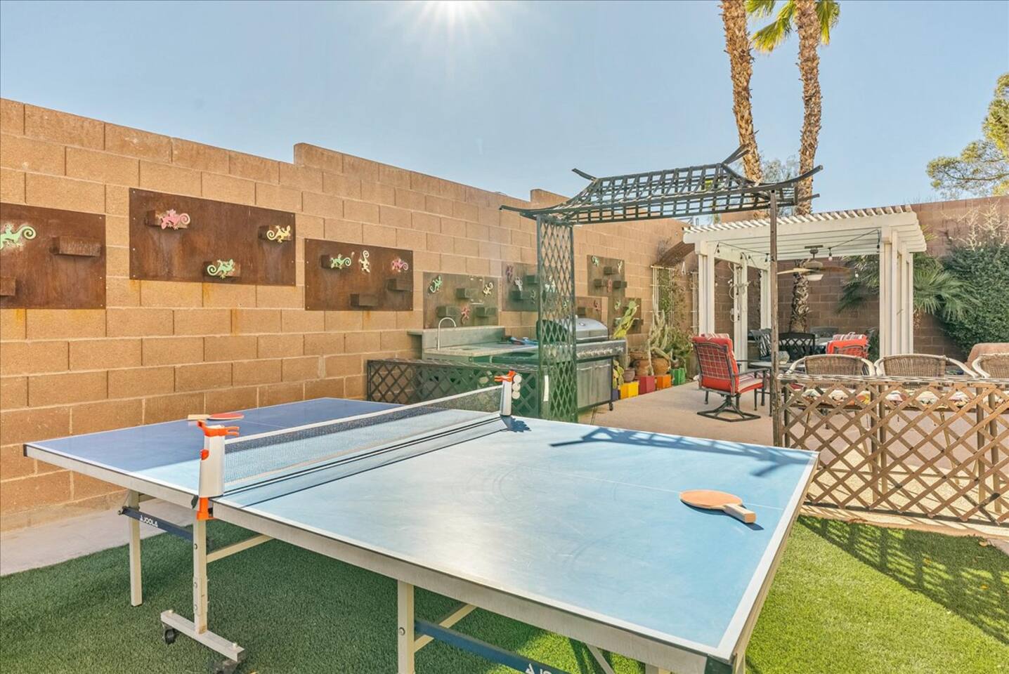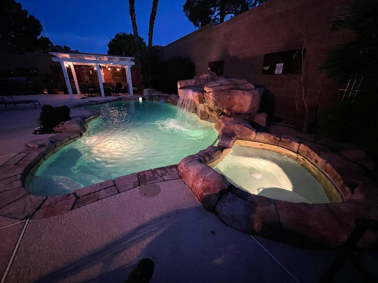 π‘ WHAT TO EXPECT Our Home: Built in 1997 with upstairs renovated in 2021. We've lovingly maintained original design elements and refreshed key areas. This is an active vacation rental β expect minor scuffs and touch-ups. Our pool equipment is modern and well-maintained, controlled via phone app. Desert Living: This is a suburban home bordering the Nevada desert. We have regular pest service, but ants, spiders, and occasionally scorpions are part of desert life. Don't go barefoot outside at night. Vegas windstorms can bring debris to the pool between service visits. If you demand: β’ Brand-new construction β’ Zero chance of pests β’ Guaranteed immaculate pool 24/7 ...this might *not* be the right fit. If you have reasonable expectations and want a great Vegas experience, we welcome you! π HOUSE GUIDELINES Occupancy & Guests: β’ Henderson permits up to 10 adults β’ Maximum 14 daytime guests (including visitors) β’ Young children may allow flexibility β please inquire β’ This is a residential neighborhood, not a party venue Noise & Quiet Hours: β’ Quiet hours: 10pm-7am weekdays, 10pm-10am weekends β’ No outdoor music β’ Keep noise under 70dB during the day, 60dB during quiet hours β’ Pool and spa must be vacated during quiet hours (enjoy them all day!) β’ Take the party inside after 10pm β or better yet, leave it on the Strip! Pool Heating: β’ Pool: Free heating up to 85Β°F β’ Spa: Free heating up to 104Β°F β’ Additional pool heating: $100 per 5Β°F (if requested) Parking: β’ Use driveway and garage space β’ No overnight street parking Check-in/Checkout: β’ Check-in: 4:00 PM - 10:00 PM β’ Checkout: 11:00 AM β’ Early/late arrangements possible (subject to availability, additional fees may apply) Why We Have Rules: Henderson City monitors noise and parking. Our neighbors value peace and quiet. We want you to enjoy yourselves β just be respectful of the residential setting. Party on the Strip, relax at home! Guarantees & Refunds: While we strive to keep our home and its amenities fully functioning, there may be occasional defects, missing appliances or ongoing repairs. We do our best to notify guests before their stay, and advise guests that by default we will not issue refunds for temporarily unavailable amenities. π° ADDITIONAL CHARGES - $15 per night per overnight guest above the first 4 persons (plus taxes/fees, automatically charged by the platform based on group size) - Pet fee: $100/pet. Small dogs ok, anything else please inquire with us. - $100 per 5 degrees to heat the pool *beyond* 85 degrees. Heating the spa is free of charge. - $25 per hour early before check-in or late after check-out, when possible and approved by hosts - $50 for every 15 minutes late after checkout time, if permission is not given beforehand by host. -$200/hr for additional cleaning required, in case of messes that require cleaning beyond our regular cleaning window and impede incoming guests. - Damaged or irreparable items and linens will be assessed to guests at either original purchase or replacement cost. β OUR PROMISE We've hosted hundreds of families, corporate teams, and travelers over 8 years. Our mission is simple: make your Vegas stay unforgettable. We're responsive (100% response rate, replies within an hour), detail-oriented, and genuinely love sharing this home. **Questions? Reach out anytime β we're here to help make your trip amazing!** --- **Registration Details:** STR-000222, NV20222497889 --- β FREQUENTLY ASKED QUESTIONS Q: How far is it really from the Strip? A: Just 15 minutes to the South Strip via I-215 β faster than many properties in Vegas proper due to less traffic. Convention Center is ~20 minutes, airport 15 minutes. Q: Is the pool and spa really heated year-round for free? A: Yes! Pool is heated to 85Β°F year-round at no charge. Spa is heated to 102Β°F for free. Want the pool warmer? We can heat it to 90Β°F or 95Β°F for an additional fee ($100 per 5Β°F). Q: Is this house good for families with kids? A: Absolutely! We have a fenced backyard, heated pool/spa, game room with pool table, and a park right next door. Many families with kids love staying here. Q: Can we host a small party or gathering? A: This is a quiet residential neighborhood, not a party venue. You're welcome to gather with up to 14 people during the day (10 overnight), but please keep noise respectful. Save the party for the Strip (it's only 15 minutes away!) or the outdoor public park right next door. Q: Is parking easy? A: Yes! We have space for 3 cars in the driveway and one in the garage. Free on-site parking β no Strip hotel fees!