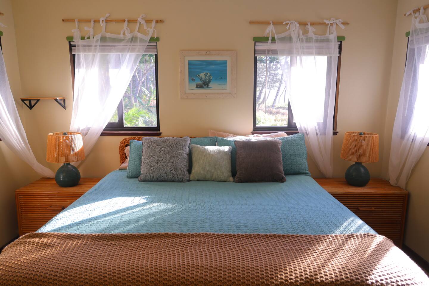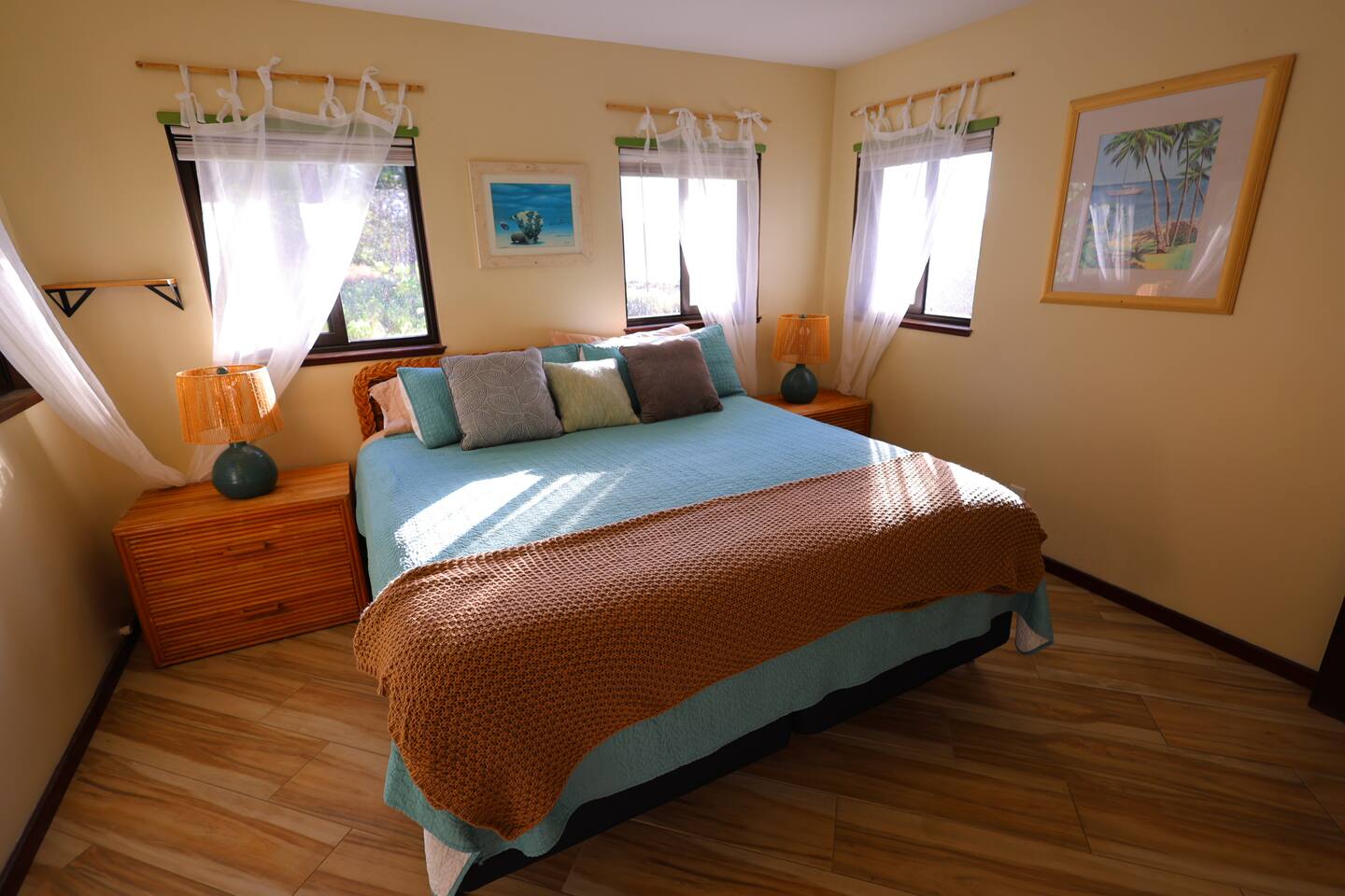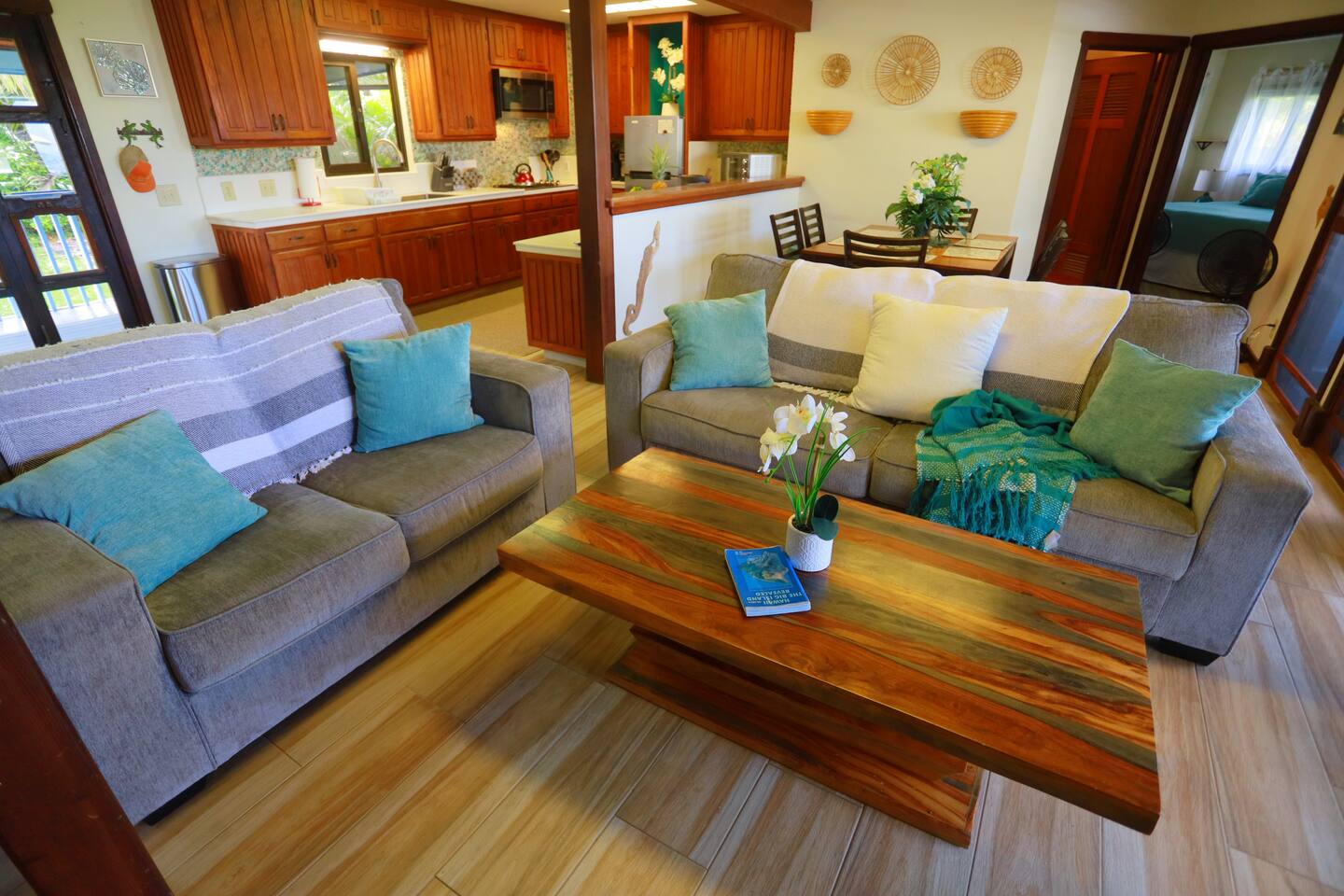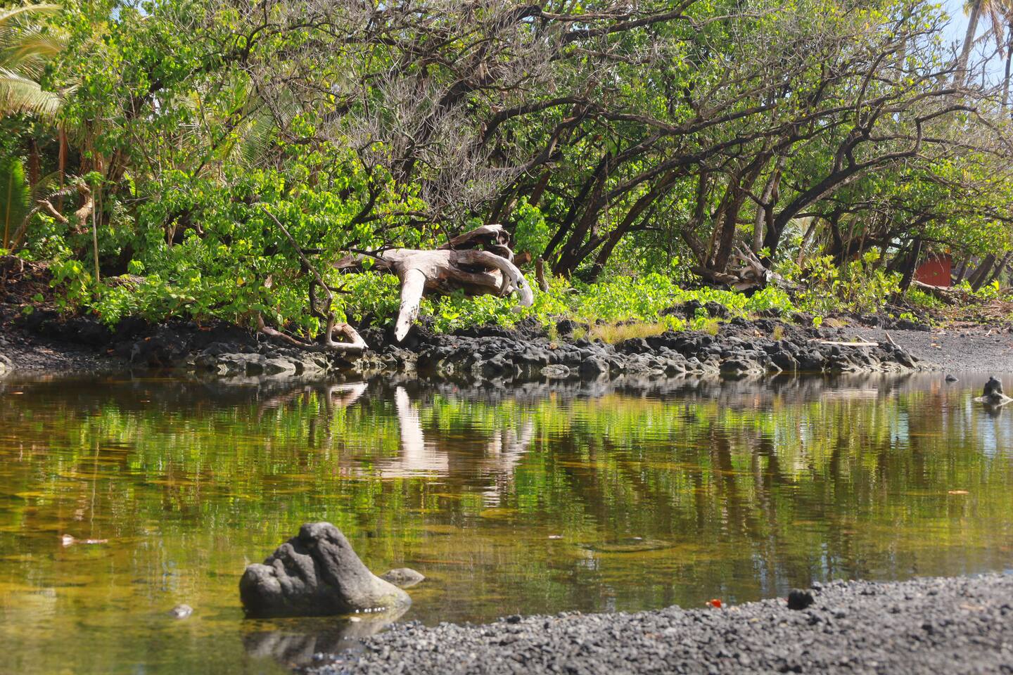 Hear and see the ocean out your bedroom balcony. Three-minute walk out your door and you're barefoot on Kehena's smooth black sand, surrounded by dolphins and Sunday drum circles. This is the Hawaii nobody talks about — the raw, wild, magical side where geckos scamper, coqui frogs chirp you to sleep -- then you wake up to gentle sounds of palm fronds and crashing waves. Pure Puna paradise. 🌊 YOUR OCEANFRONT SANCTUARY The Experience: Wide-open bifold doors frame endless ocean views. Watch sunrise from your master bedroom balcony. Fall asleep to waves. This bungalow is designed for indoor/outdoor living — ocean breezes flow through, ceiling fans keep you cool, and the jungle surrounds you in tropical luxury. There is no air conditioning here but you won't miss it. Puna rains and trade winds keep temperatures remarkably comfortable, usually cooler than Kona. Keep the air flowing and embrace the rhythm of eastern Big Island. Perfect for: • 1-3 couples and friends seeking adventure and relaxation • Families who want real Hawaii (not resort Hawaii) • Anyone ready to disconnect and experience Puna's wild beauty 🏠 INSIDE THE BUNGALOW Living Spaces: • Three spacious decks (upstairs balcony, downstairs deck, screened private lanai) • Open-concept living room with 65" TV (Disney+, Hulu, ESPN+ — bring your own streaming accounts) • Fully equipped kitchen (cookware, dishes, coffee/tea) • Garage/den with washer/dryer, mini ping pong, beach gear Bedrooms (sleeps 8): • Master Suite (upstairs): King bed + full futon, private balcony with ocean views, ensuite bathroom with soaker tub, 50" TV • Guest Suite (downstairs): King bed, private bedroom • Living Room: Two Cordaroy bean bags that convert to double mattresses (bedding in closets) • Outdoor Lanai: Queen convertible sofa (screened, sheltered — perfect for "glamping" in the jungle) • Garage/den: Queen futon. Not official "living space," but available if anyone needs privacy. Bathrooms: • Master ensuite (upstairs) - standalone shower and oversized soaking bathtub • Full bath with shower (downstairs) 🏊♂️ SWIM SPA & OUTDOOR LIVING Your Private Oasis: The swim spa is set to 90°F — use it either as a plunge pool or hot tub. After a day of hiking volcanoes, swimming at Kehena, or exploring waterfalls, sink into the spa under starry Hawaiian skies. Fire pit brings everyone together for evening storytelling. Outdoor Amenities: • Heated swim spa (huge hot tub or plunge pool) • Fire pit ready for smores and stargazing (huge solo stove -- bring your own firewood) • BBQ grill • Hammock for lazy afternoons • Screened outdoor living/glamping space 🏖️ KEHENA BLACK SAND BEACH (3-MINUTE WALK) Hawaii's Best-Kept Secret: Walk 500 feet out the door to the beach parking lot, then take the footpath down to paradise. Kehena's coarse-grained black sand feels like a luxury spa treatment. Dolphins visit regularly. Strong swimmers love the waves. Families splash in the shore break. Sunday Drum Circles: Every Sunday, Kehena comes alive. Locals gather for an epic drum circle that starts around noon and lasts until sunset. This is Puna culture at its peak — music, dance, community, and pure aloha spirit. Note: Kehena is informally clothing-optional (~10% of beachgoers are nude). Everyone is respectful and families are welcome. The waves can be strong — supervise kids and swim only if you're confident in the water. 🌋 NEARBY ADVENTURES Right on Your Doorstep: You're in Puna — Big Island's "wild east." This is where lava meets the ocean, hot springs bubble up, and Hawaiian culture thrives away from the tourist crowds. 🔥 TOP EXPERIENCES: • Pohoiki Hot Ponds & Black Sand Beach (15 min): Isaac Hale Beach Park has Hawaii's only public "hot springs" — volcanic-heated brackish water. Pohoiki Beach is the youngest black sand beach in the world. Surfers love it. • Kalapana & Uncle Robert's Awa Bar (10 min): Wednesday nights = live Hawaiian music and dance. Local bands, food trucks, kava bar, and the beating heart of Puna culture. Saturday mornings bring the Kaimu farmers market — fresh coconuts, ahi, ono, and Big Island vibes. • Kalani Resort (5 min): Epicenter of Puna's "ecstatic dance" community. Sunday yoga + zen-EDM dance parties, followed by beach gatherings and sunset music at Seaview. This is Puna at its peak. • Hawaiian Volcanoes National Park (45 min): See Kilauea crater, hike lava tubes, and if you're lucky, witness an active eruption. Best viewed at night! Chain of Craters Road (15 min from the south entrance) offers coastal hikes along ancient lava flows. • Hilo Waterfalls & Town (45 min): - Rainbow Falls, Wai'ale Falls, Boiling Pots - Ola Brew (best burgers + craft beer) - Cafe Pesto (upscale Italian) - Richardson, Carlsmith, Onekahakaha beach parks (calm water, sea turtles, snorkeling) • Epic Day Trips: - Akaka Falls (442 ft waterfall, 1h) - Waipio Valley Overlook (1h25) - Punalu'u Black Sand Beach + Green Sand Beach + South Point (1h30-2h) - Mauna Kea Observatory (2h — 4WD required for summit) • Pahoa Town (25 min): The "wild west" of Hawaii. Malama Market (groceries), great restaurants (Tin Shack, Kaleo's, Ning's Thai, Pho 19), and Friday/Saturday night live music in coffee shops, bars, and dress shops. Way more than meets the eye. 📍 WHAT MAKES PUNA SPECIAL This isn't Waikiki. This isn't Kona. This is *real Hawaii* — remote, raw, and unforgettable. ✓ Black sand beaches with dolphins ✓ Volcanic hot springs ✓ Sunday drum circles ✓ Lava flows you can hike ✓ Dozens of waterfalls ✓ Jungle living with ocean breezes ✓ Hawaiian culture (not tourist culture) ✓ Ecstatic dance, live local music, farmers markets 📍 IS THIS HOME RIGHT FOR YOU? Our bungalow is *perfect* for: ✅ People who've already done the resort/condo thing (Kona, Waikiki, Kihei, Poipu) and want REAL Hawaii ✅ Anyone who wants to see Hawaiian Volcanoes National Park AND be next to a beach. ✅ Kama'