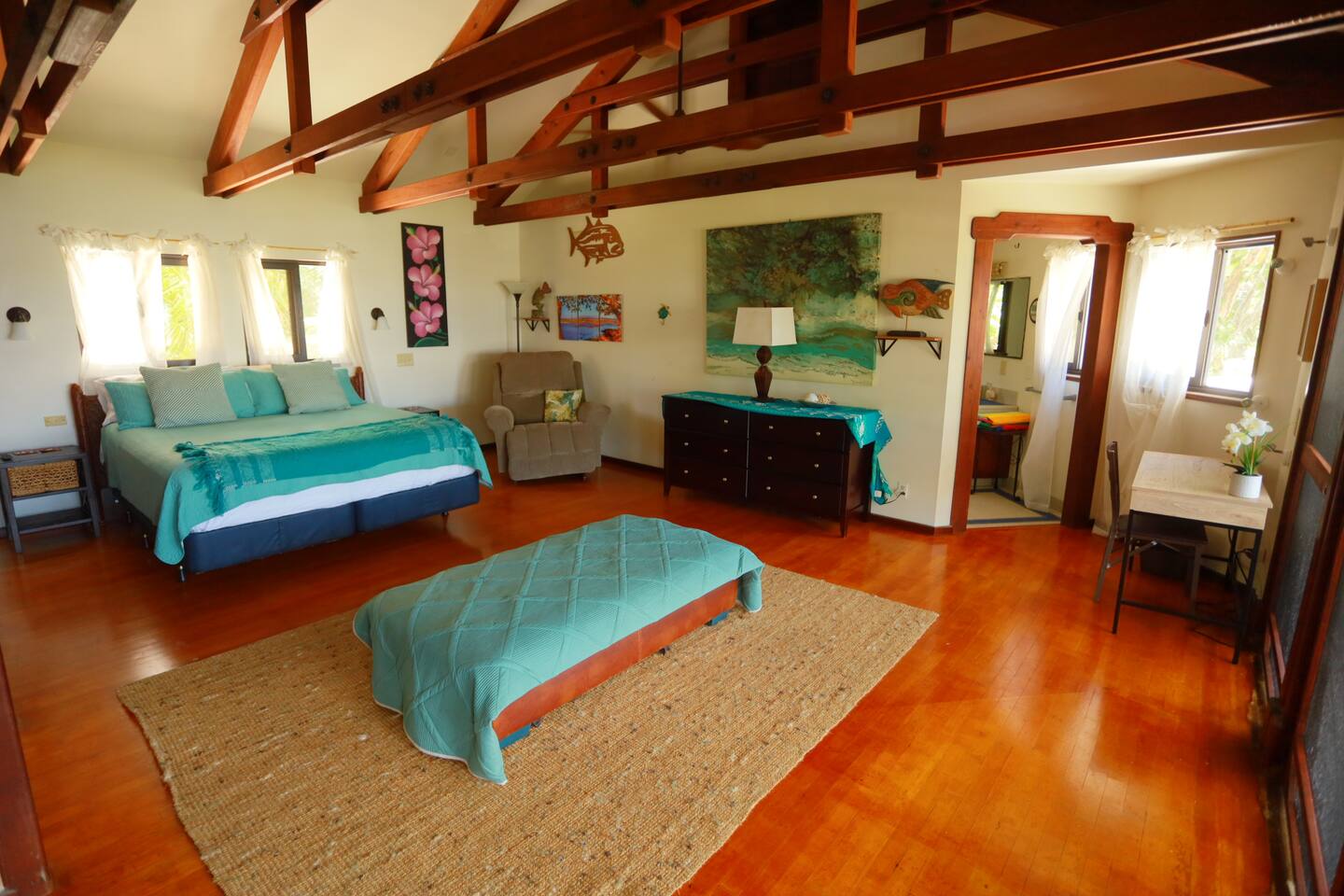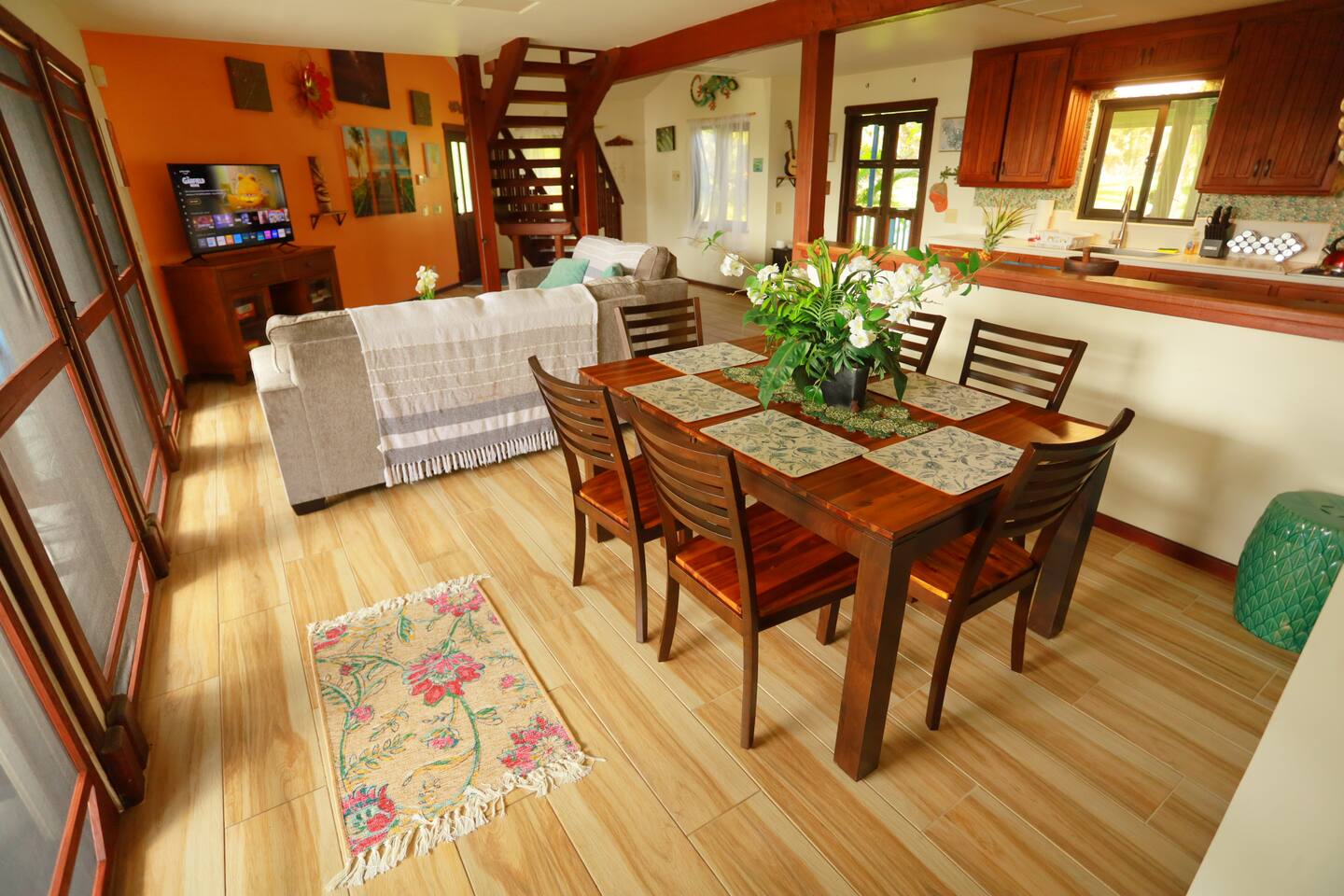 ✅ WHAT TO EXPECT This is Jungle Living: Puna is tropical, remote, and wild. Geckos are everywhere (they eat bugs and keep the house clean, even if they poop). You'll see ants, spiders, and occasional critters — that's part of living in paradise. We have regular pest control, but this isn't a sterile resort. No Air Conditioning: You won't need it! Ocean breezes, ceiling fans, full bug screening, and open-air design keep the house comfortable year-round (temps in the mid 70s-low 80s). Keep windows open, fans circulating, and embrace tropical living. Rainwater Catchment: Like most Puna homes, we collect rainwater. It's filtered, but we recommend bottled water for drinking. Please conserve water — avoid using the giant upstairs tub more than once every 3 days (the swim spa is way more fun anyway!). Rust & Mold: We're oceanfront in a tropical jungle. Despite constant maintenance, you'll see rust and occasional mold — it's unavoidable in this climate. We manage it aggressively, but if you need perfection, this isn't the right fit. Stock Up Before You Arrive: Pahoa is 25 minutes away (Malama Market). Hilo is 45 minutes (Target, Walmart). Bring groceries, drinks, and essentials — you'll want to minimize trips once you settle into island time. 📋 HOUSE GUIDELINES Occupancy: • Maximum 8 guests (works best when beds are shared or kids use bean bags/sofas) • Strongly recommend max 6 adults for comfort Check-in/Checkout: • Check-in: 4:00 PM - 9:00 PM • Checkout: 10:00 AM • Early/late arrangements possible (subject to availability, $25/hour) House Rules: • Respect the swim spa (please follow posted rules) • Conserve water (it's precious!) • Keep the jungle vibes going (no drama, just aloha) ⚠️ LIABILITY WAIVER: By booking this home, guests agree to waive all host liability for injury or death related to use of equipment (swim spa, grill, gas appliances) and assume all risk for use of grounds or facilities. Exercise caution with falling coconuts, tripping hazards, rust, mold, volcanic fog, and other environmental factors. If this waiver is not agreeable, please cancel immediately and notify the host. GUARANTEES & REFUNDS: While we strive to keep our home and its amenities fully functioning, there may be occasional defects, missing appliances or ongoing repairs. We do our best to notify guests before their stay, and advise guests that by default we will not issue refunds for temporarily unavailable amenities. 💰 ADDITIONAL CHARGES - $20 per night per overnight guest above the first 4 persons (plus taxes/fees, automatically charged by the platform based on group size) - $170 for emergency water refill (half our refill cost, only if catchment is exhausted during your stay -- very rarely enforced) - $25 per hour early before check-in or late after check-out, when possible and approved by hosts - $50 for every 15 minutes overstay after checkout time, if permission is not given beforehand by host - $200/hr for additional cleaning required, in case of messes that require cleaning beyond our regular cleaning window and impede incoming guests - Damaged or irreparable items and linens will be assessed to guests at either original purchase or replacement cost --- ❓ FREQUENTLY ASKED QUESTIONS Q: Is there air conditioning? A: No! And you won't miss it. Ocean breezes, ceiling fans, and open-air living keep the house comfortable year-round (70s-80s).This is tropical Hawaii — embrace it. Hawaii humidity is not Caribbean humidity, it's very comfortable. Q: Will I see bugs or geckos? A: Yes! Geckos are your friends — they eat bugs and keep the house clean (even if they do leave droppings). This is jungle living. If you need a sterile resort, this isn't it. Q: How does the water system work? A: We use rainwater catchment (standard in Puna). Water is filtered but we recommend bottled water for drinking. Please conserve! Avoid using the giant upstairs tub more than once every 3 days — the swim spa is way more fun anyway. Q: Is the beach really next door? A: Yes! Kehena black sand beach is a 3-minute walk (500 ft). The trail down is steep but totally worth it. Sundays bring the legendary drum circle — one of Hawaii's best-kept secrets. Q: What's the vibe in Puna? A: Remote, raw, real Hawaii. This is the "wild east" — lava flows, hot springs, ecstatic dance at Kalani, live music in Pahoa. It's 45 minutes to Hilo (nearest city) and 25 minutes to the closest supermarket. Stock up before you arrive! Q: What if something breaks? A: We do our best to keep everything running, but this is an oceanfront jungle home — things happen. We're responsive and will fix issues ASAP, but we don't issue refunds for minor inconveniences. Come with reasonable expectations and an adventurous spirit. Q: Is Kehena Beach clothing-optional? A: Informally, yes — about 10% of beachgoers are nude. Everyone is respectful and families with kids are common. It's a welcoming, judgment-free space. Q: Are the waves safe for kids? A: The waves can be strong! Only strong swimmers should go in deep. Kids can play in the shore break with supervision. Dolphins visit regularly, which more than makes up for the rough surf. --- ✅ OUR PROMISE We've been hosting in Puna for years, and our guests get it. They come for the adventure, the raw beauty, and the magic of Hawaii's wild side. If you're ready to trade resort perfection for authentic island living, you're going to love it here. Questions? Reach out anytime — we're here to help make your Puna adventure unforgettable!