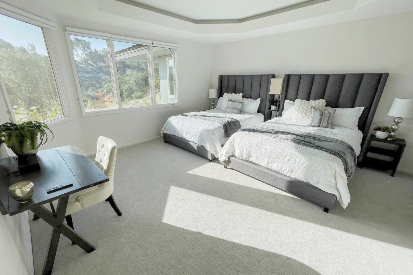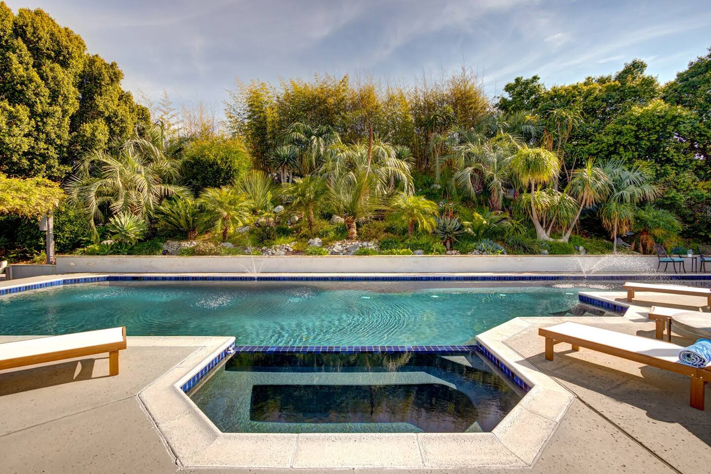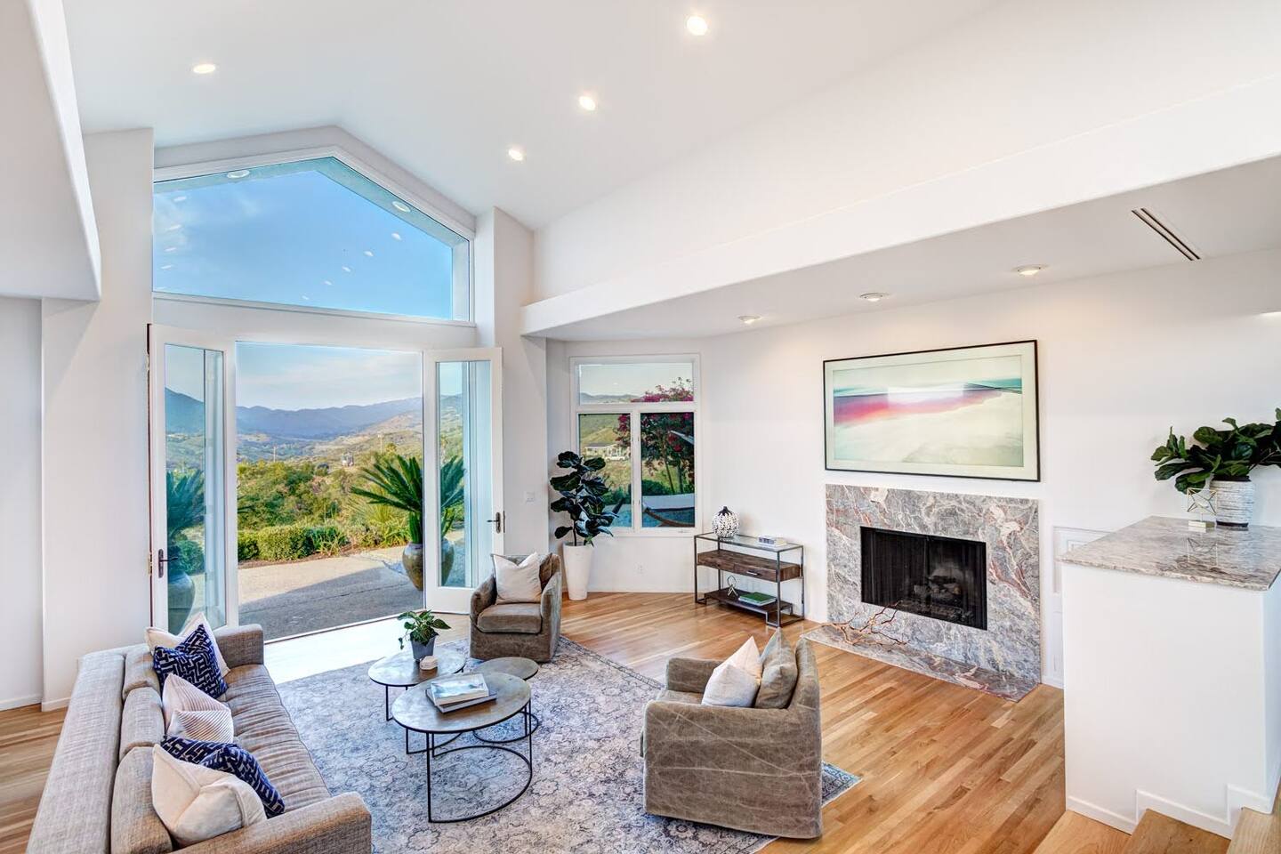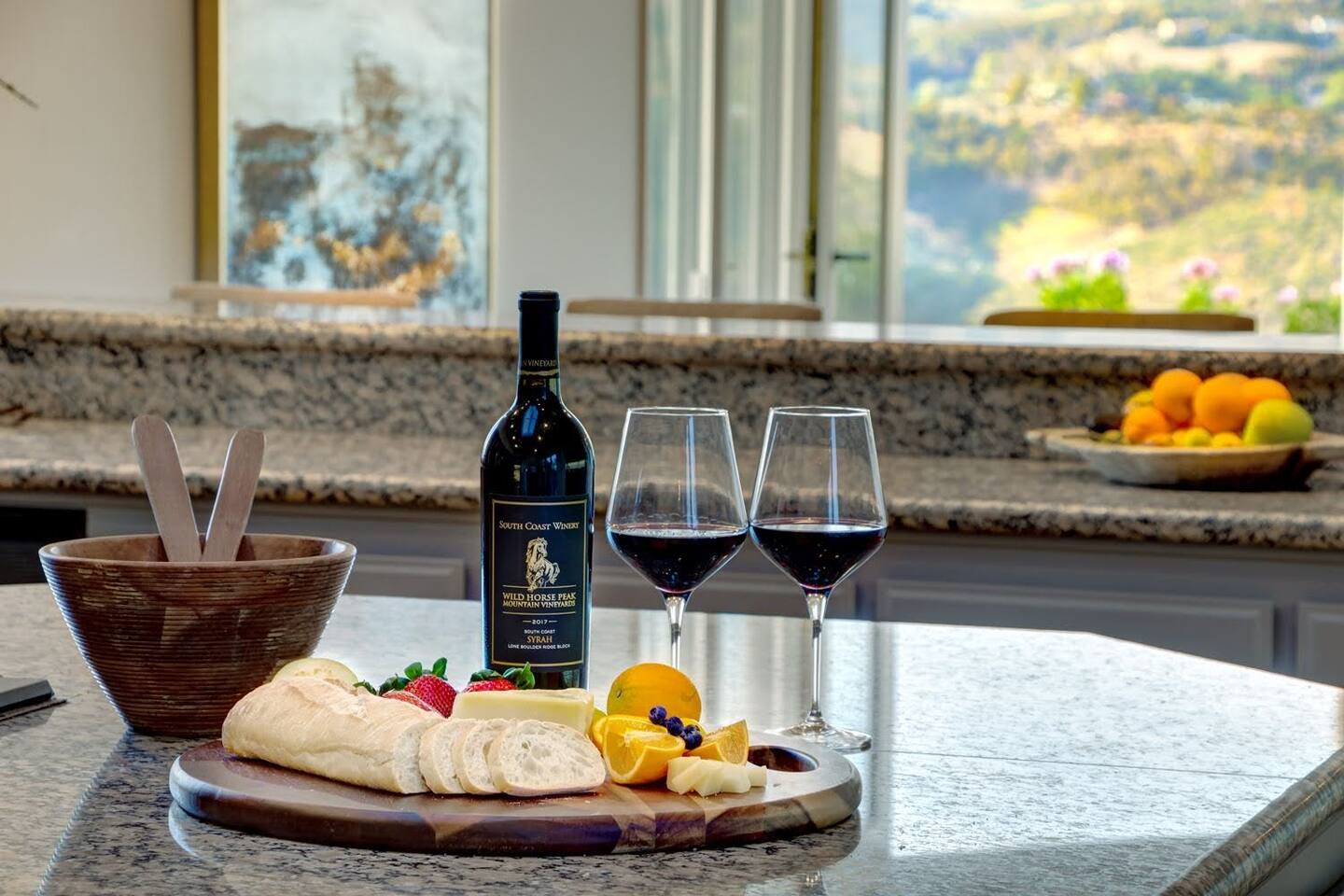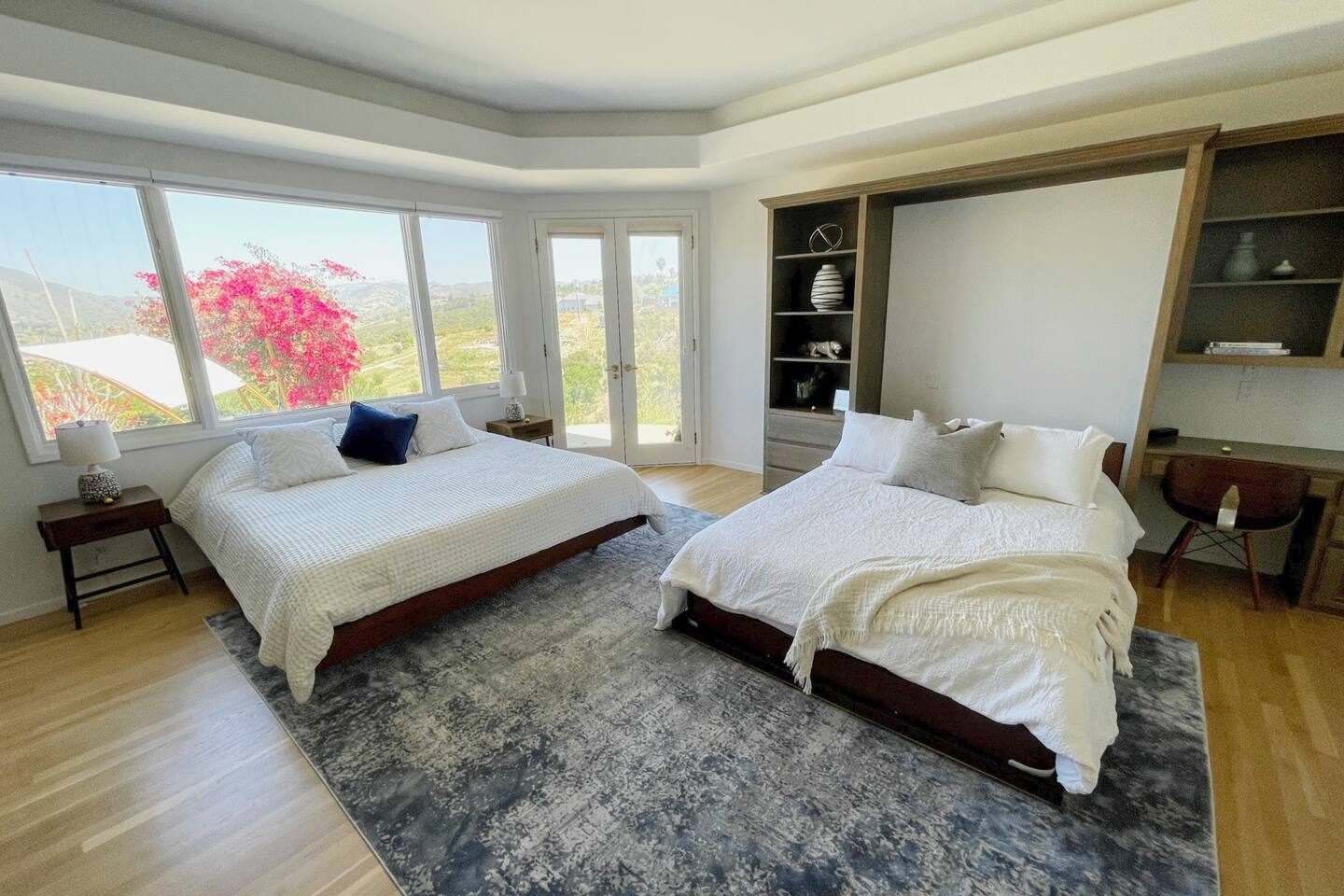 Pick fresh citrus from the orchard for your morning juice. Practice yoga in our expansive living room with panoramic views of the De Luz mountains. Lounge in the sun by our sparkling pool, surrounded by palms and plumeria. Step out your door onto the Santa Margarita River Trail, with blooming wildflowers, shaded riverbanks and hidden truffles. Toast marshmallows in the backyard chiminea as the sun sets. Fallbrook is one of Southern California’s last rural enclaves. Secluded and stunning, yet still close to everything -- wine tours, beach days, hiking, golf and pickleball, or a trip to the city. ★ WHAT MAKES OUR HOME SPECIAL • Château-inspired architecture by Colbourn Currier Noll with sunlit Versailles-style courtyard • Half-Olympic heated saltwater pool + oversized 10-person spa (both heated free) • 3,800 sq ft estate on 4 private acres surrounded by citrus and vineyards • Chef’s kitchen: 6-burner range, double ovens, Sub-Zero fridge, wok + grill • Direct access to the Santa Margarita River Trail • Ideal for weddings, wine weekends & multigenerational retreats 🏡 THE ESTATE Bedrooms (up to 15 overnight guests): • Master: King bed, optional queen bean bag + crib | 800 sq ft bathroom (bridal prep dream) | tropical palm garden and pool views • Bedroom 2: Two queens + optional bean bag | En-suite bathroom | 65" Frame TV | valley views • Bedroom 3: King + queen Murphy bed | En-suite bathroom | garden and valley views • Bedroom 4: Full-over-queen bunk (top: 1 person, 180 lbs max) | private bathroom | valley views • Living room: Two queen bean bag beds | 85" Frame TV | ultimate panoramic views Living & Entertaining: • Open living/dining with French doors to front courtyard, back yard with panoramic mountain views. • Indoor dining for 12+ • 85" and 65" TVs (Disney+, Hulu, HBO Max) • Board games and toys • 3 gas fireplaces (please ask before lighting) Outdoor front yard and pool: • 5,000 sq ft poolside patio with loungers, canopy daybed, tropical palms • Outdoor dining for 12+, gas BBQ grill and outdoor kitchen under the lanai • Ping pong, pool table and lounge under our sheltered wisteria lanai Outdoor back yard: • Gas chiminea and chair circle for cozy evenings, fireside chats and s'mores • Mature orange and lemon trees (pick as much as you like) • Large open space for ceremonies • 4 acres for exploring • Hiking & mountain biking trails at your door, leading to the Santa Margarita river. Sustainability: • 40 kW solar & electric pool heat pump • EV charger - free and convenient for your use 🏊 POOL & SPA Our half-Olympic size lap pool is larger than most hotel offerings, and stunning when sparkling in the sun. Saltwater feels soft compared to the ocean or chlorine pools -- perfect for soaking away stress. The pool is regularly 80–85°F in summer and fall, and heated free to a refreshing 75°F in winter. Our adjacent 104°F spa — as big as many plunge pools and seating 10 — is available for warm-ups. Additional pool heating above 75°F is available for $40/degree with advance notice. 💍 WEDDINGS & EVENTS With its panoramic vineyard and valley views, expansive back yard space and formal courtyard, the estate is perfect for intimate weddings and celebrations. • Up to 60 guests, 12 vehicles maximum • Bridal prep: 800 sq ft master bath • Ceremony: front courtyard or huge open back yard with panoramic views • Receptions: back yard (60 people), poolside or under lanai (30 people), or open up the living room doors on both sides (30 people). • No charge up to 30 guests, $50/person for 31-60 • Quiet after 9 PM, no outdoor music without approval Close to Grand Traditions, Monserate Winery, Los Willows Wedding Estate for larger ceremonies. Many use our villa for wedding party lodging. Connect us with your wedding planner or ask us for catering recommendations. 🍷 WINE COUNTRY GETAWAYS, BACHELOR & BACHELORETTES It's like a California edition of "The Great Gatsby" -- luxurious, private and sophisticated. • 20 min to Temecula wineries and attractions (Ponte, Europa Village, Wilson Creek, hot air balloons) • More personal wine tasting in local Fallbrook wineries (Monserate, Fallbrook Winery). • Homemade Sangria at the Vineyard at 1927 and signature mango margaritas at Estrella’s. • Pechanga casino 15 minutes away • Close enough to San Diego for a night on the town 🏖️ PERFECT FOR FAMILIES Elegant for adults, fun for kids, spacious for everyone. • Enormous lap pool will stun your kids and their friends • Outdoor games in the lanai, 4 acres to explore • Huge living room with up to 4 bean bag beds + Frame TV for the ultimate sleepover. • Chef's kitchen and plenty of room for cooking or catering. • Legoland and Oceanside beach just 30-35 mins! Perfect for multigenerational reunions, quinceañeras, and milestone birthdays. ★ LOCATION, ACTIVITIES & DAY TRIPS Fallbrook sits between wine country, beaches, deserts, and cities—all within an hour. It feels like the last rural bastion in southern California, yet nearly everything can be done as a day trip. • Wine Country (20-30 min): Temecula Old Town, wineries, hot air balloons, Pechanga Casino • North County beaches (30-50 min): Oceanside, Carlsbad, Encinitas, San Onofre, La Jolla • San Diego (50-60 min): Zoo & Safari Park, Balboa Park, SeaWorld, Gaslamp, Mission Beach, Coronado Beach • Orange County (60-90 min): Dana Point, Laguna Beach, Newport Beach • Hiking & Outdoors: Santa Margarita River trail (right out your door), Potato Chip Rock (45 min), Mount Palomar (40 min), Anza-Borrego (90 min), • Golf & Pickleball: Golf Club of California, Pala Mesa Resort, Fallbrook Tennis & Pickleball Club (10-15 min) • Family Fun: Legoland (35 min), Carlsbad Flower Fields (35 min, spring), Disneyland (90 min) Fallbrook boasts excellent local wineries and eateries, 5--15 minutes from our house: • Monserate Winery, Fallbrook Winery, The Vineyard at 1927 --