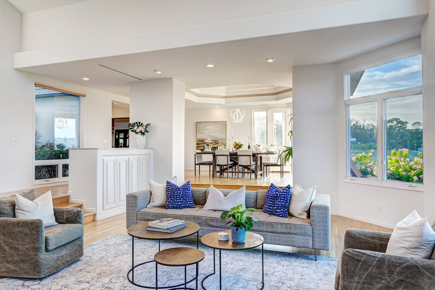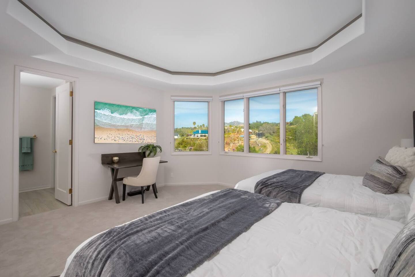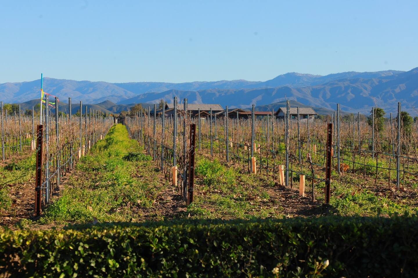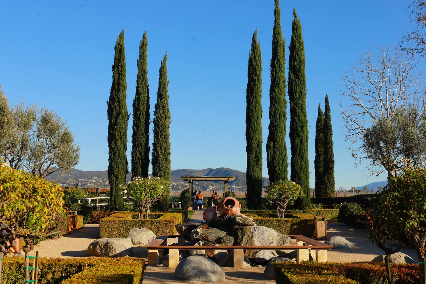 Pick fresh citrus from the orchard for your morning juice. Practice yoga in our expansive living room with panoramic views of the De Luz mountains. Lounge in the sun by our sparkling pool, surrounded by palms and plumeria. Step out your door onto the Santa Margarita River Trail, with blooming wildflowers, shaded riverbanks and hidden truffles. Toast marshmallows in the backyard chiminea as the sun sets. Fallbrook is one of Southern California’s last rural enclaves. Secluded and stunning, yet still close to everything -- wine tours, beach days, hiking, golf and pickleball, or a trip to the city. ★ WHAT MAKES OUR HOME SPECIAL • Château-inspired architecture by Colbourn Currier Noll with sunlit Versailles-style courtyard • Half-Olympic heated saltwater pool + oversized 10-person spa (both heated free) • 3,800 sq ft estate on 4 private acres surrounded by citrus and vineyards • Chef’s kitchen: 6-burner range, double ovens, Sub-Zero fridge, wok + grill • Direct access to the Santa Margarita River Trail • Ideal for weddings, wine weekends & multigenerational retreats 🏡 THE ESTATE Bedrooms (up to 15 overnight guests): • Master: King bed, optional queen bean bag + crib | 800 sq ft bathroom (bridal prep dream) | tropical palm garden and pool views • Bedroom 2: Two queens + optional bean bag | En-suite bathroom | 65" Frame TV | valley views • Bedroom 3: King + queen Murphy bed | En-suite bathroom | garden and valley views • Bedroom 4: Full-over-queen bunk (top: 1 person, 180 lbs max) | private bathroom | valley views • Living room: Two queen bean bag beds | 85" Frame TV | ultimate panoramic views Living & Entertaining: • Open living/dining with French doors to front courtyard, back yard with panoramic mountain views. • Indoor dining for 12+ • 85" and 65" TVs (Disney+, Hulu, HBO Max) • Board games and toys • 3 gas fireplaces (please ask before lighting) Outdoor front yard and pool: • 5,000 sq ft poolside patio with loungers, canopy daybed, tropical palms • Outdoor dining for 12+, gas BBQ grill and outdoor kitchen under the lanai • Ping pong, pool table and lounge under our sheltered wisteria lanai Outdoor back yard: • Gas chiminea and chair circle for cozy evenings, fireside chats and s'mores • Mature orange and lemon trees (pick as much as you like) • Large open space for ceremonies • 4 acres for exploring • Hiking & mountain biking trails at your door, leading to the Santa Margarita river. Sustainability: • 40 kW solar & electric pool heat pump • EV charger - free and convenient for your use 🏊 POOL & SPA Our half-Olympic size lap pool is larger than most hotel offerings, and stunning when sparkling in the sun. Saltwater feels soft compared to the ocean or chlorine pools -- perfect for soaking away stress. The pool is regularly 80–85°F in summer and fall, and heated free to a refreshing 75°F in winter. Our adjacent 104°F spa — as big as many plunge pools and seating 10 — is available for warm-ups. Additional pool heating above 75°F is available for $40/degree with advance notice. 💍 WEDDINGS & EVENTS With its panoramic vineyard and valley views, expansive back yard space and formal courtyard, the estate is perfect for intimate weddings and celebrations. • Up to 60 guests, 12 vehicles maximum • Bridal prep: 800 sq ft master bath • Ceremony: front courtyard or huge open back yard with panoramic views • Receptions: back yard (60 people), poolside or under lanai (30 people), or open up the living room doors on both sides (30 people). • No charge up to 30 guests, $50/person for 31-60 • Quiet after 9 PM, no outdoor music without approval Close to Grand Traditions, Monserate Winery, Los Willows Wedding Estate for larger ceremonies. Many use our villa for wedding party lodging. Connect us with your wedding planner or ask us for catering recommendations. 🍷 WINE COUNTRY GETAWAYS, BACHELOR & BACHELORETTES It's like a California edition of "The Great Gatsby" -- luxurious, private and sophisticated. • 20 min to Temecula wineries and attractions (Ponte, Europa Village, Wilson Creek, hot air balloons) • More personal wine tasting in local Fallbrook wineries (Monserate, Fallbrook Winery). • Homemade Sangria at the Vineyard at 1927 and signature mango margaritas at Estrella’s. • Pechanga casino 15 minutes away • Close enough to San Diego for a night on the town 🏖️ PERFECT FOR FAMILIES Elegant for adults, fun for kids, spacious for everyone. • Enormous lap pool will stun your kids and their friends • Outdoor games in the lanai, 4 acres to explore • Huge living room with up to 4 bean bag beds + Frame TV for the ultimate sleepover. • Chef's kitchen and plenty of room for cooking or catering. • Legoland and Oceanside beach just 30-35 mins! Perfect for multigenerational reunions, quinceañeras, and milestone birthdays. ★ LOCATION, ACTIVITIES & DAY TRIPS Fallbrook sits between wine country, beaches, deserts, and cities—all within an hour. It feels like the last rural bastion in southern California, yet nearly everything can be done as a day trip. • Wine Country (20-30 min): Temecula Old Town, wineries, hot air balloons, Pechanga Casino • North County beaches (30-50 min): Oceanside, Carlsbad, Encinitas, San Onofre, La Jolla • San Diego (50-60 min): Zoo & Safari Park, Balboa Park, SeaWorld, Gaslamp, Mission Beach, Coronado Beach • Orange County (60-90 min): Dana Point, Laguna Beach, Newport Beach • Hiking & Outdoors: Santa Margarita River trail (right out your door), Potato Chip Rock (45 min), Mount Palomar (40 min), Anza-Borrego (90 min), • Golf & Pickleball: Golf Club of California, Pala Mesa Resort, Fallbrook Tennis & Pickleball Club (10-15 min) • Family Fun: Legoland (35 min), Carlsbad Flower Fields (35 min, spring), Disneyland (90 min) Fallbrook boasts excellent local wineries and eateries, 5--15 minutes from our house: • Monserate Winery, Fallbrook Winery, The Vineyard at 1927 --